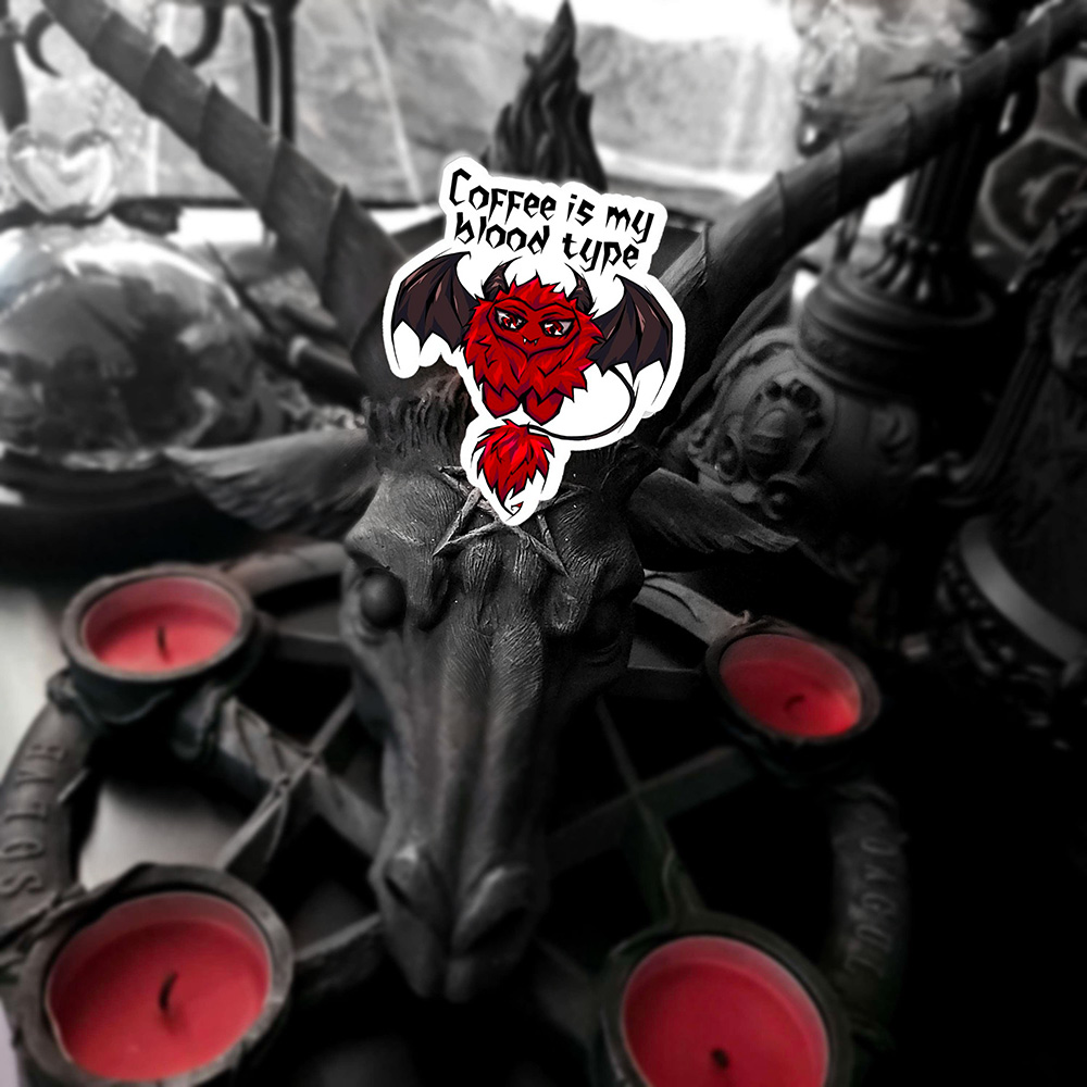 Show off your Attitude with the Attidoods! This premium vinyl stickers features the bold personality of Vampy saying "Coffee is my blood type". Express yourself, one 'dood at a time.